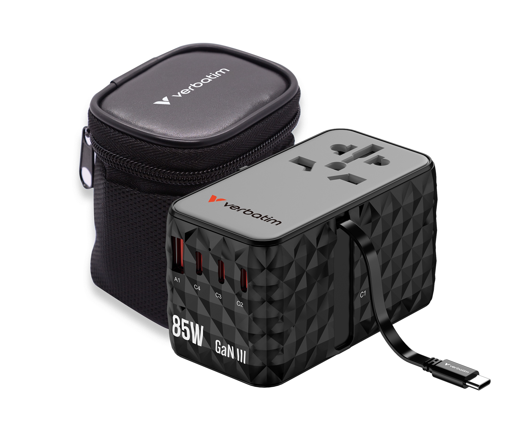 Verbatim Universal Charger Travel Adapter USB-C Retractable Cable 85W CNT-02