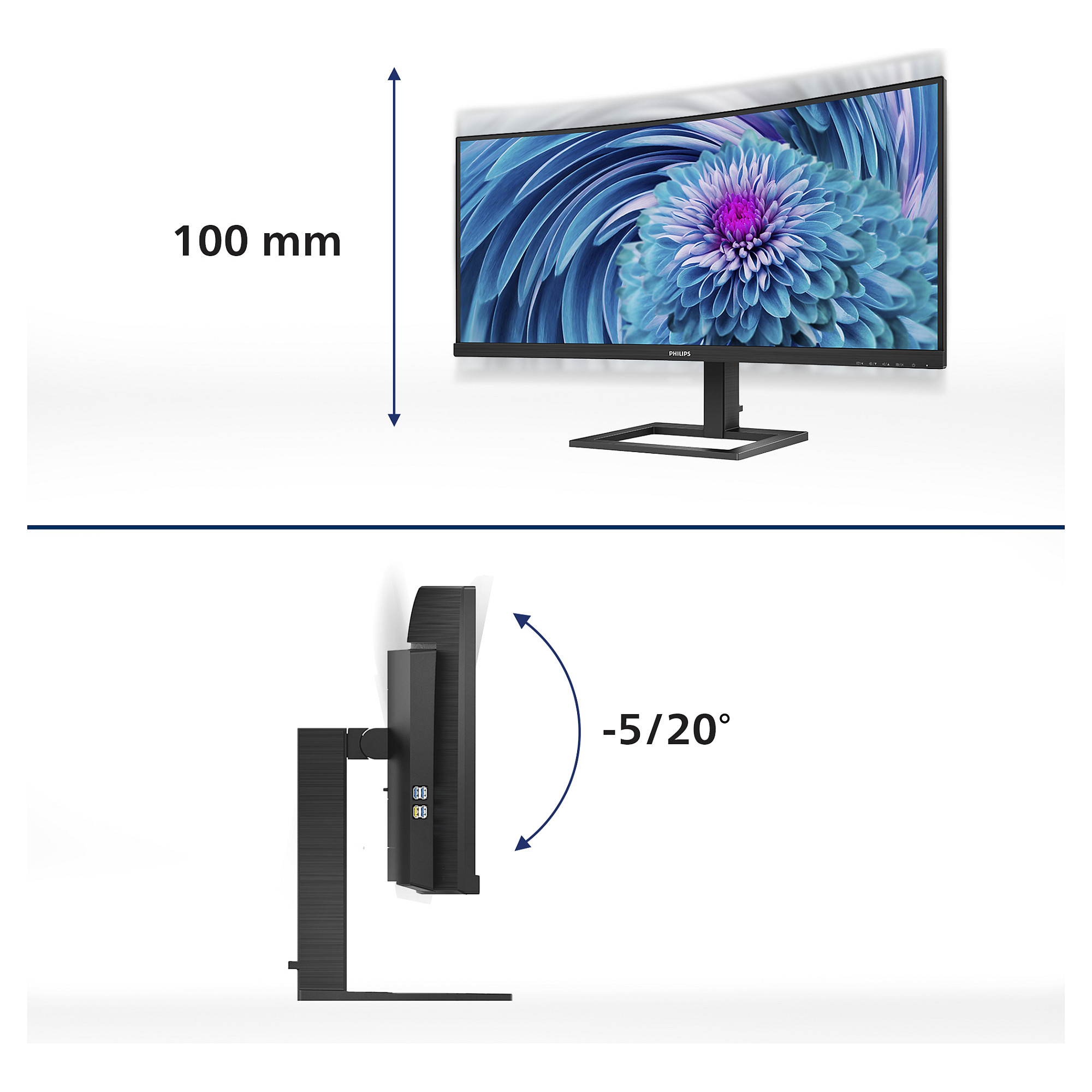 The Philips E line curved UltraWide display offers expansive panoramic visuals. A WQHD display with an ergonomic stand make for optimal viewing conditions. All-in-one USB-C and MultiView meet the need for productivity.